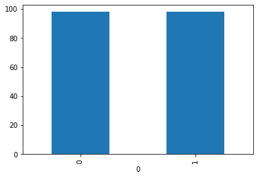 因正負樣本相差過小,且smote function為自動平衡方法,也就是說它會自動抓取正負樣本差距給予平衡,但因差距僅三樣,因此我將資料0的部分重複貼上依次,使其差距擴大至49+3 = 52,下一步驟的adaysn也採用相同的更動資料。
